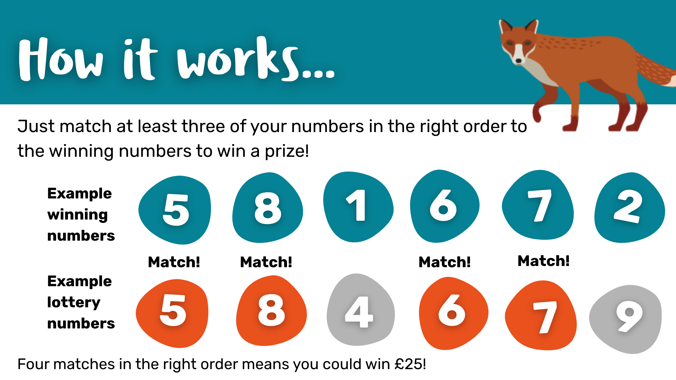 We’ll send you an email confirmation and a letter in the post confirming your entry to our Weekly Lottery, including your lucky six-digit unique lottery number(s).